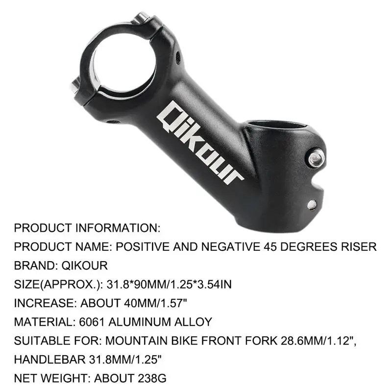 BIKEIN PRO Black Cycling Handlebar Stem Riser MTB Bicycle Aluminum Alloy Forged Adjustable Handleba